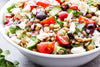 - Combine chickpeas, chopped vegetables, herbs, and feta cheese in a large bowl.