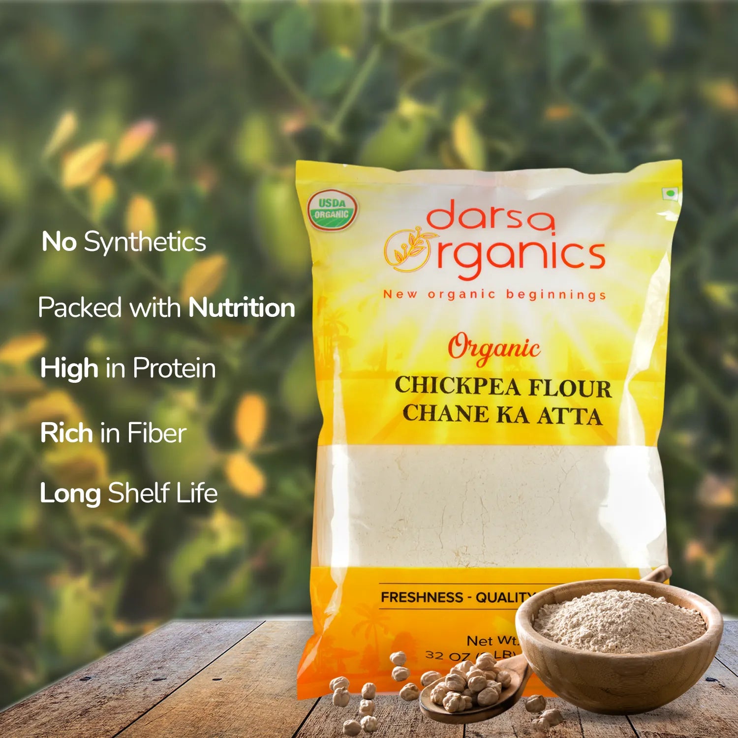 • ORGANICALLY SOURCED: Darsa Organics Chickpea Flour is ground from organic Chickpea sourced from the fertile regions of north India. Following the global standards for organic farm produce, our Chana flour is packed & shipped without using any harmful chemicals or pesticides to ensure maximum purity & freshness.