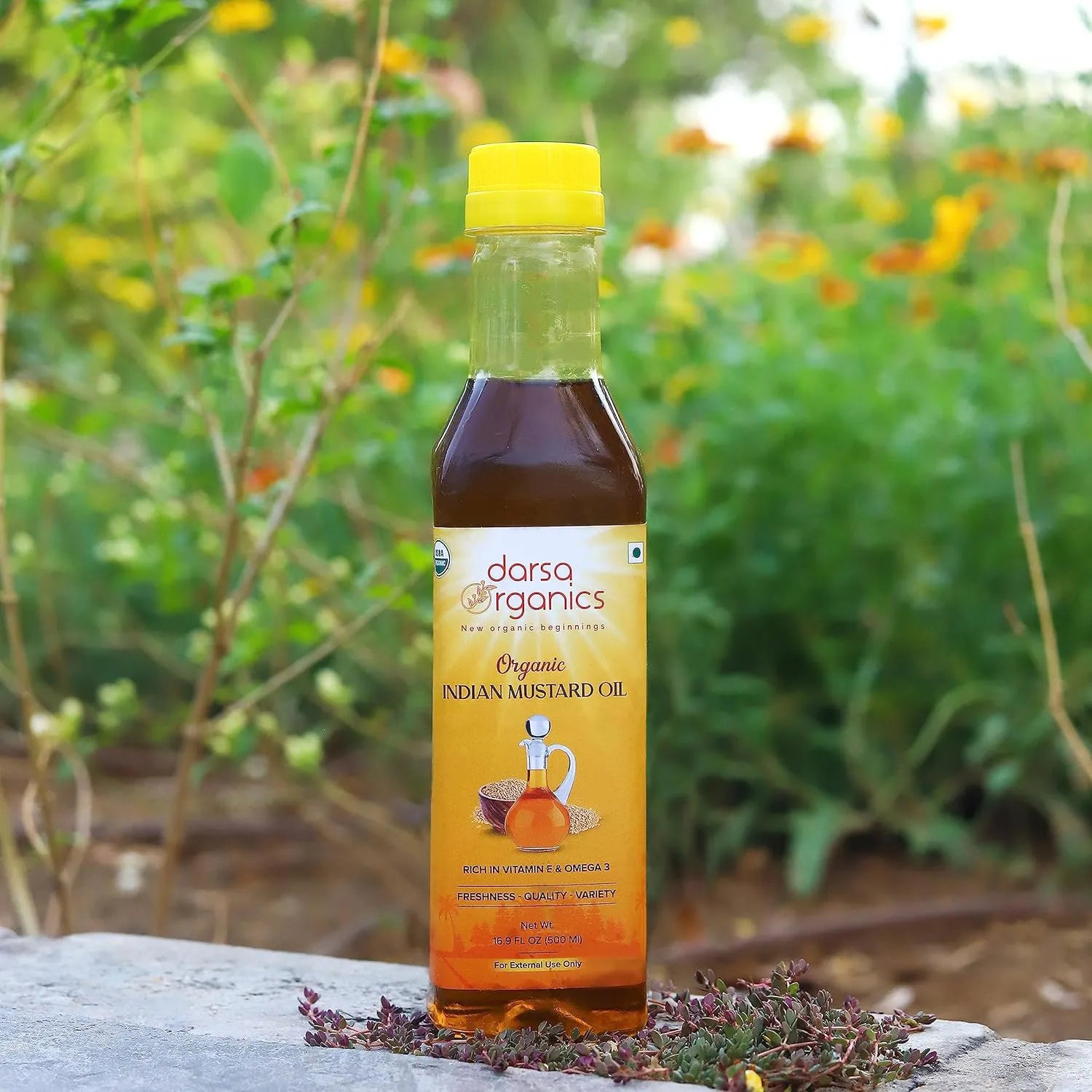 - Organically Sourced: Darsa Organics Mustard Oil is extracted from mustard grown in the fertile regions of north India. Following the global standards for Organic farm produce, our mustard seeds are grown without harmful chemicals or pesticides to ensure maximum purity & freshness. A strict quality inspection process ensures the highest level of purity of the organic oil.