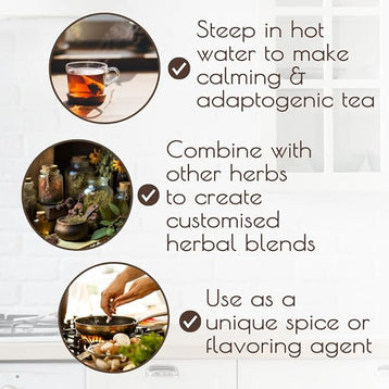 • NUTRITIOUS SUPPLEMENT: Make herbal tea by steeping the ashwagandha root pieces in hot water for 10-15 minutes and then strain. Use as a flavoring agent by adding to soups and stews.