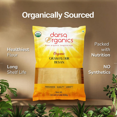 - ORGANICALLY SOURCED: Darsa Organics Gram Flour is ground from organic Gram sourced from the fertile regions of north India. Following the global standards for organic farm produce, our Besan is packed & shipped without using any harmful chemicals or pesticides to ensure maximum purity & freshness.