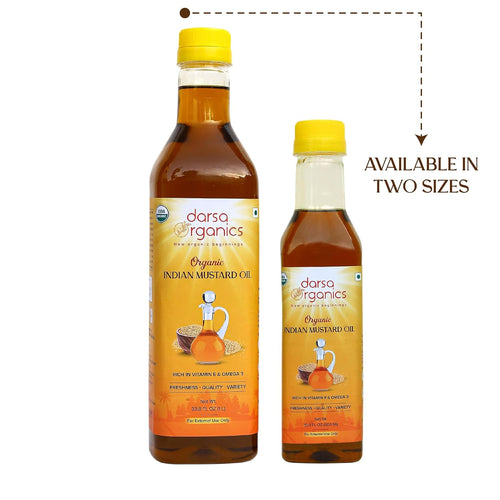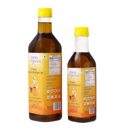 - Organically Sourced: Darsa Organics Mustard Oil is extracted from mustard grown in the fertile regions of north India. Following the global standards for Organic farm produce, our mustard seeds are grown without harmful chemicals or pesticides to ensure maximum purity & freshness. A strict quality inspection process ensures the highest level of purity of the organic oil.
