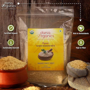 - ORGANICALLY SOURCED: Darsa Organics Basmati Rice is sourced from the fertile regions of north India. Following the global standards for organic farm produce, our rice is grown, packed & shipped without harmful chemicals or pesticides to ensure maximum purity & freshness.