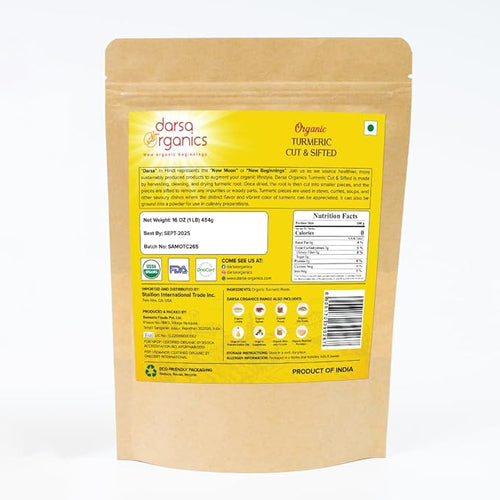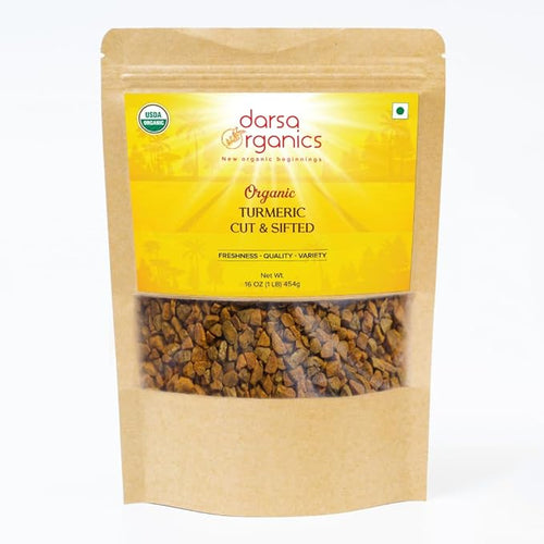 - Organic Quality: Darsa Organics takes pride in responsibly sourcing turmeric root cut and sifted in India without artificial chemicals or additives. They are certified organic, non-GMO, raw, and vegan.