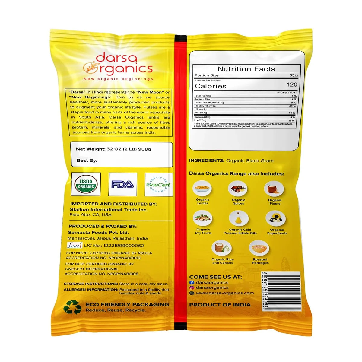 - PROMOTES HEALTHY LIFESTYLE: Darsa Organics Urad dal is an ideal choice for people conscious about their daily nutrition intake. This non-GMO lentil contains proteins, calcium, and iron. The Organic Black Gram lentil is a great source of dietary fiber, contributing to your daily nutrition intake.