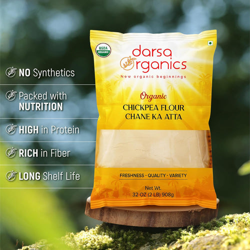 - ORGANICALLY SOURCED: Darsa Organics Chickpea Flour is ground from organic Chickpea sourced from the fertile regions of north India. Following the global standards for organic farm produce, our Chana flour is packed & shipped without using any harmful chemicals or pesticides to ensure maximum purity & freshness.