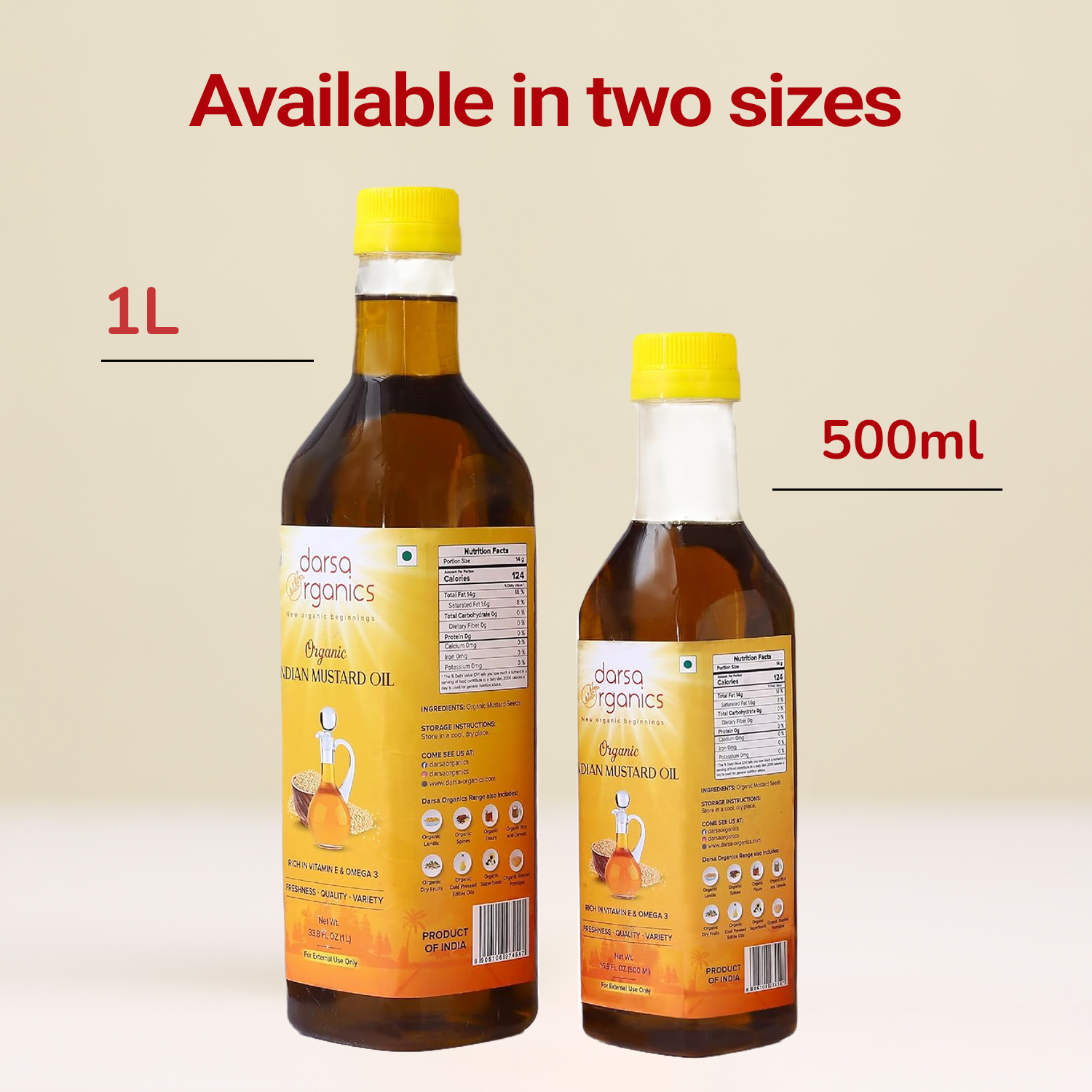 - Organically Sourced: Darsa Organics Mustard Oil is extracted from mustard grown in the fertile regions of north India. Following the global standards for Organic farm produce, our mustard seeds are grown without harmful chemicals or pesticides to ensure maximum purity & freshness. A strict quality inspection process ensures the highest level of purity of the organic oil.