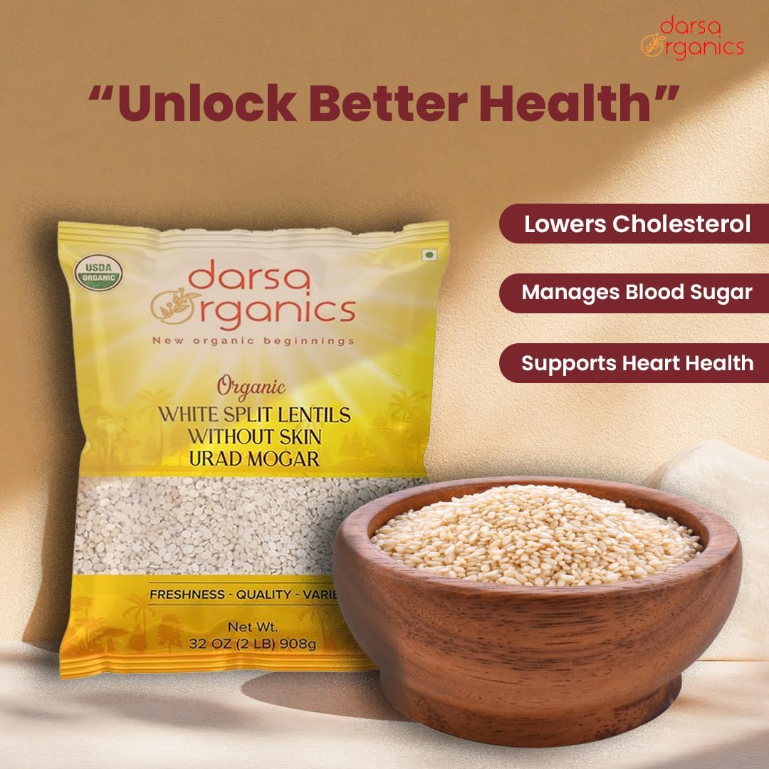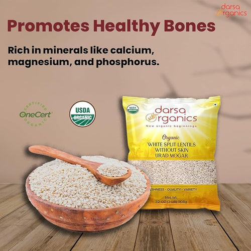 Organic White Split Lentils Without Skin (Urad Mogar)